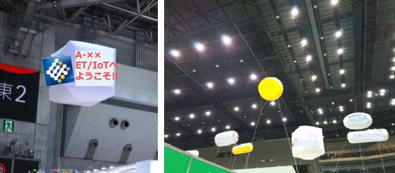 自社ブース上部にバルーン広告を設置。遠くからでも視認性はバッチリです!!