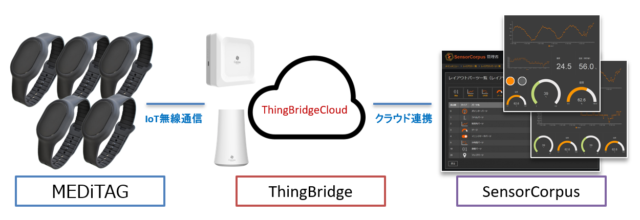 「CONNECTUS」シリーズは、BLEルーターをユーザー環境に設置するだけで、BLE対応デバイスで収集される様々なセンサーデータを簡単に収集しWEBブラウザ上ですぐ可視化できるソリューションです。BLEルーター経由で収集されたデータは、IoTサービスに相応しい加工を施した上でIoTデータ収集サービスThingBridge 上に集約、様々なサービスやアプリケーションとのデータ連携を可能にするSensorCorpus とシームレスに連携します。これにより、IoTシステム開発で発生するIoTセンサーネットワークの新規構築、クラウドシステムや可視化アプリケーションなどのソフトウェアの開発は必要なく、初期導入費用及び期間を大幅に削減することが可能になります。