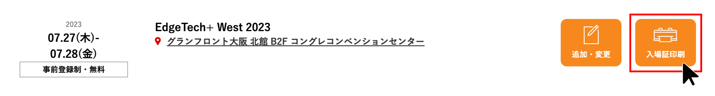 「入場証印刷」ボタンから入場証pdfを表示し、QRコードをスキャンしてください!