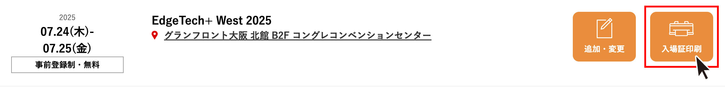 「入場証印刷」ボタンから入場証pdfを表示し、QRコードをスキャンしてください!