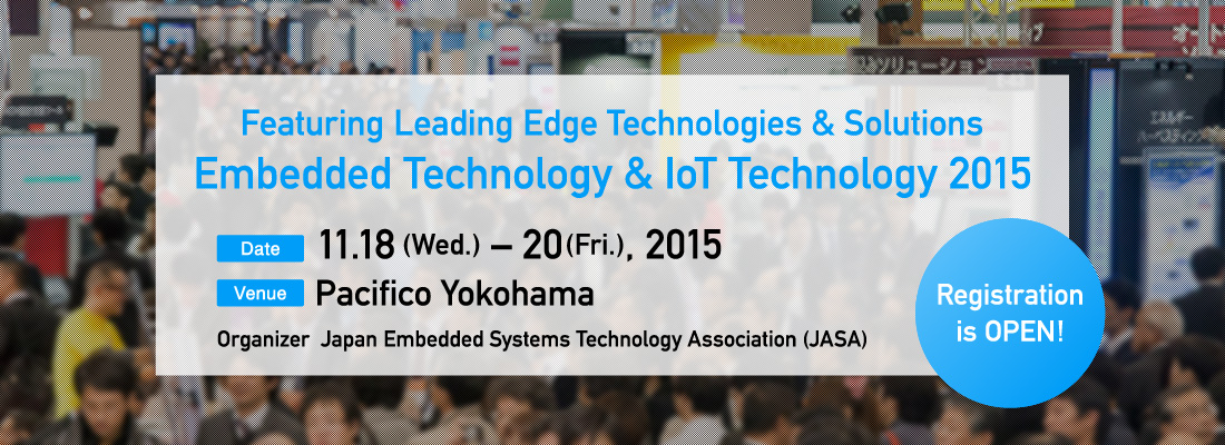 29th Embedded Technology exhibition for the major semiconductor companies, processor vendors, OS, middle-ware, development tools, board computer, measurement hardware, and designs houses.