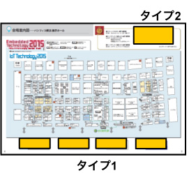 開催当日に来場者へ配布する会場案内図に広告スペース&会期中会場入口(6箇所)に掲示する案内掲示板広告スペースをご用意いたします。