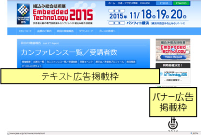 ET2015/IoT Technology2015に関心をお持ちいただいている組込み業界の方に、出展情報や最新の製品情報を発信できるテキスト広告です。