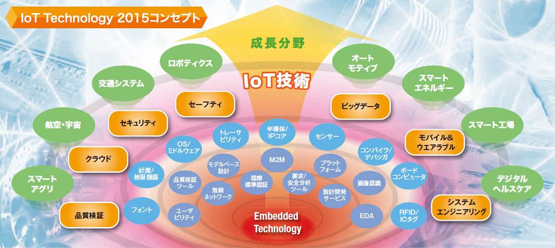 本格的なIoT時代を迎え、人やデータ・モノ・プロセスといったすべてが関連性をもつことで新しいビジネスビジョンが創造され始めました。IoT Technology2015は、その核となる組込みシステムの総合技術展Embedded Technology 2015と連動し、IoTの最新ソリューションを体感できる展示会として展開いたします。