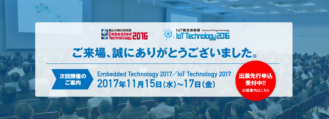 出展先行申込受付中! ET&IoT Technology 2017 出展先行予約/申込締切:2017年2月28日(火)