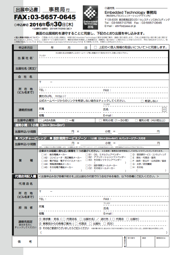 ET2016 出展申込書