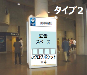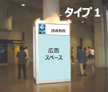 展示ホール1階コンコースの誘導看板に広告スペースをご用意いたします。