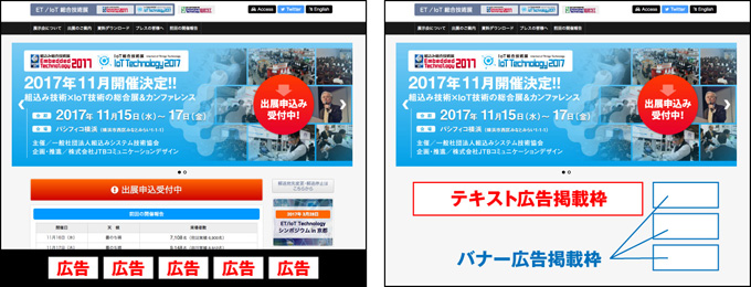ET 2017/IoT Technology 2017に関心をお持ちいただいている組込み業界・IoT(M2M)関連業界の方に、出展情報や最新の製品情報を発信できるテキスト広告です。 ET / IoT Technology Newsが配信されている、当該分野に関心の高い約75,000名の業界プロフェッショナルへの訴求に効果的です。