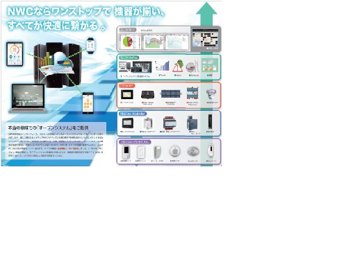 NWCは、最先端のビル監視・制御システム「iNBIS」を提供する企業です。ハード・ソフトを全てワンストップで提供できる「ビル業界のIoTソリューション・リーダー」として、ビル・商業施設・工場・病院・ホテルなどの照明・空調などの設備を最適制御し、快適性と省エネをお届けしています。