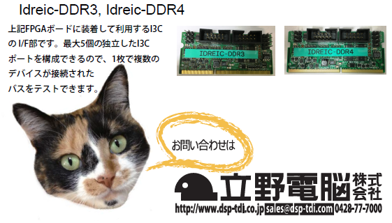 FPGA関係では10万円台からのArria10ボードがホットな製品です。これに組み合わせて使用するI3Cバス評価用Idreic-DDR4を展示しています。BUS関係ではI2C、SPI、CANといったレガシーバスからA2B,eSPI,I3C,DALI2,SVID,USB-PD3.0といった最新バスに対応するツールを展示しています。