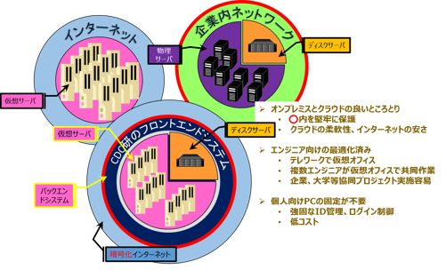 CDC, Inc. provide the unique "All in One Cloud" technology, which combines the robustness of the intranet and the flexibility of the cloud at the same time. An environment where engineering work can be performed anywhere. This is a low-cost cloud environment that strongly supports the LSI / Electronic systems design and development. In addition to the process sharing function as if design review is being performed in the same conference room from multiple remote locations, functions for engineers are built in so that multiple engineers can advance the project together, cost management It also has management functions for project managers. All you need is a PC and a web browser. Telework environment with security and portability can be introduced at low cost. In addition, it connects companies and individuals registered as members, and helps to cope with design skills and resource shortages as a virtual design center.