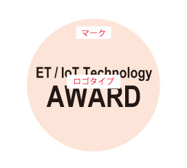 - 「ET/IoT Technology AWARD」の文字を用いたロゴタイプと、マークの組み合わせにて作成してください。