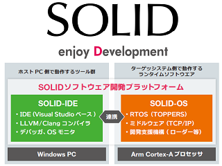 RTOSと先進のClangコンパイラを一体化した開発プラットフォームSOLIDを展示します。