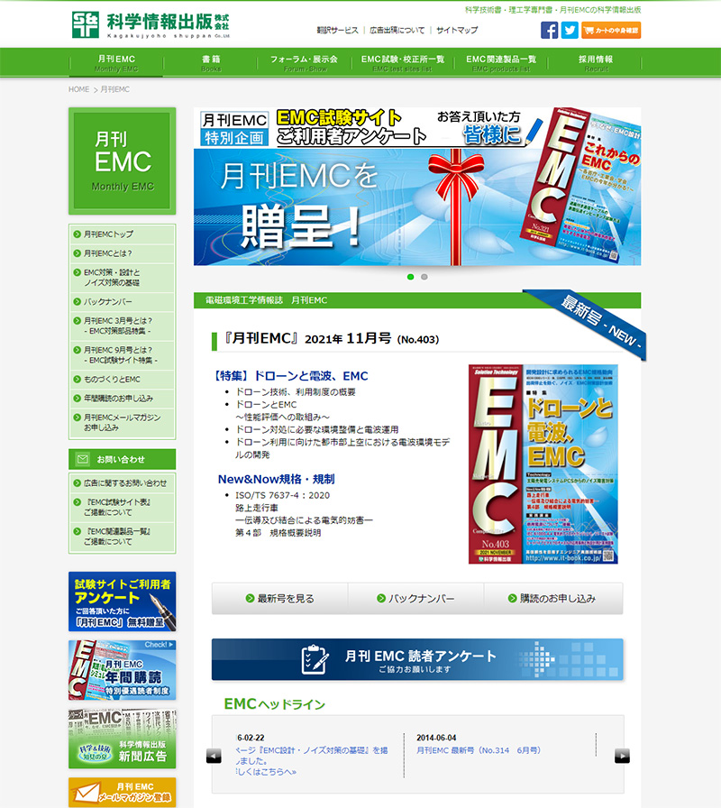 「月刊EMC」は創刊32周年を迎えた、EMC業界で世界唯一の月刊誌で、EMC対策・EMC設計・ノイズ対策・EMI対策を実現する専門雑誌です。