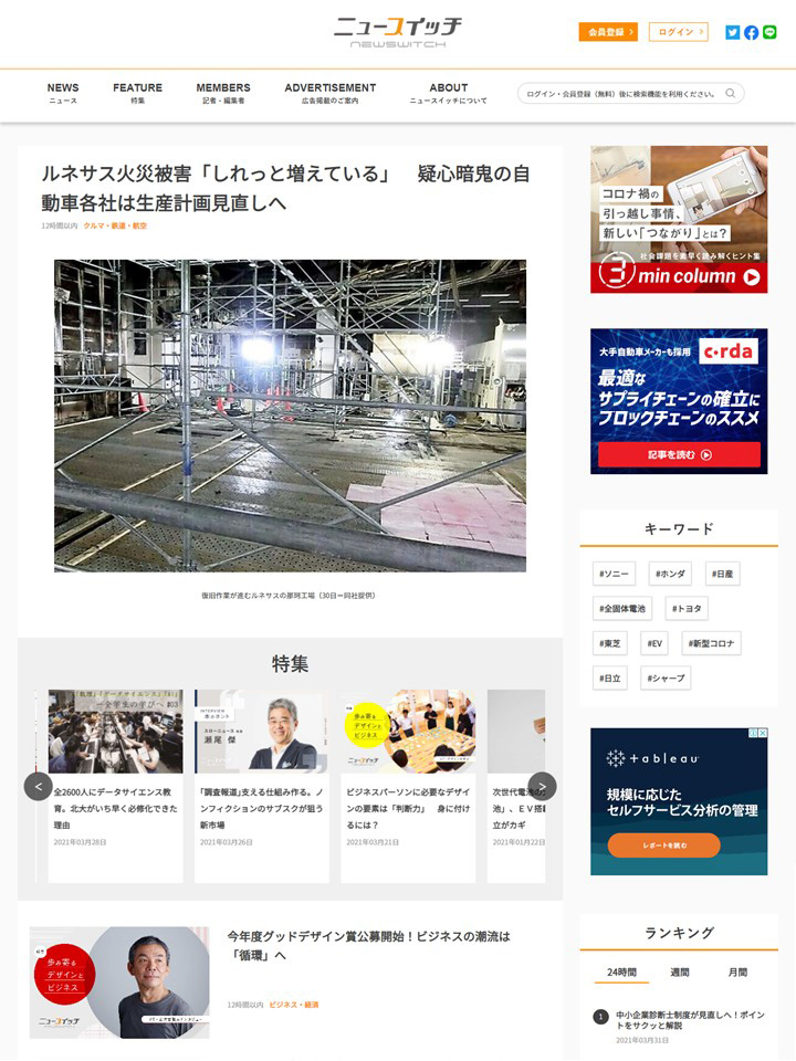 ・有料会員様向けコンテンツとして、専門記者による業界の取材記事や海外ニュースの抄訳を掲載