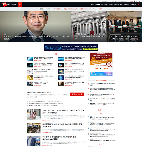 ZDNet Japan(ジーディーネット・ジャパン)は世界10カ国以上で展開しています。テクノロジーで企業を強くするすべてのリーダーに、世界の動向を知らせる海外記事や、国内の成功企業の様子など役立つ情報を発信。最新のITソリューションに関する情報は企業の競争力アップに直結します。話題のテーマに沿ったセミナーも随時開催、読者との交流を図っています。
