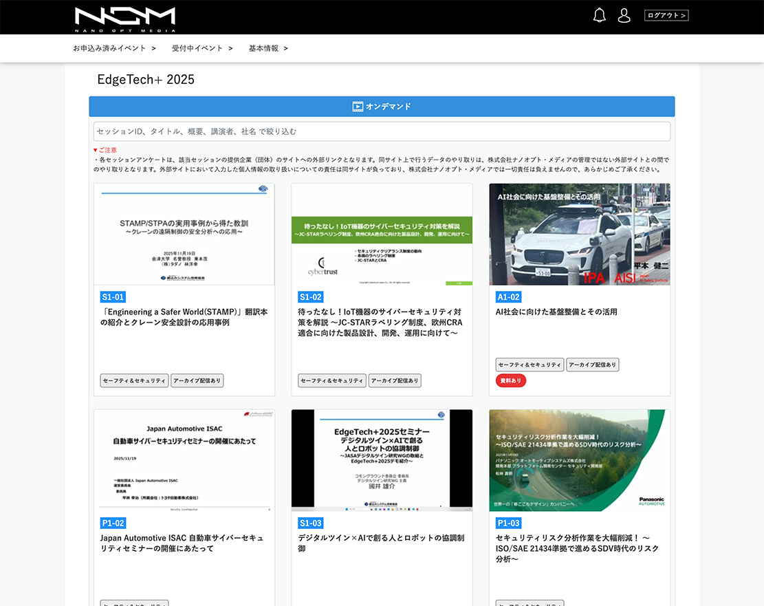 ログインすることにより、セッション動画の視聴と講演資料のダウンロードが可能になります
