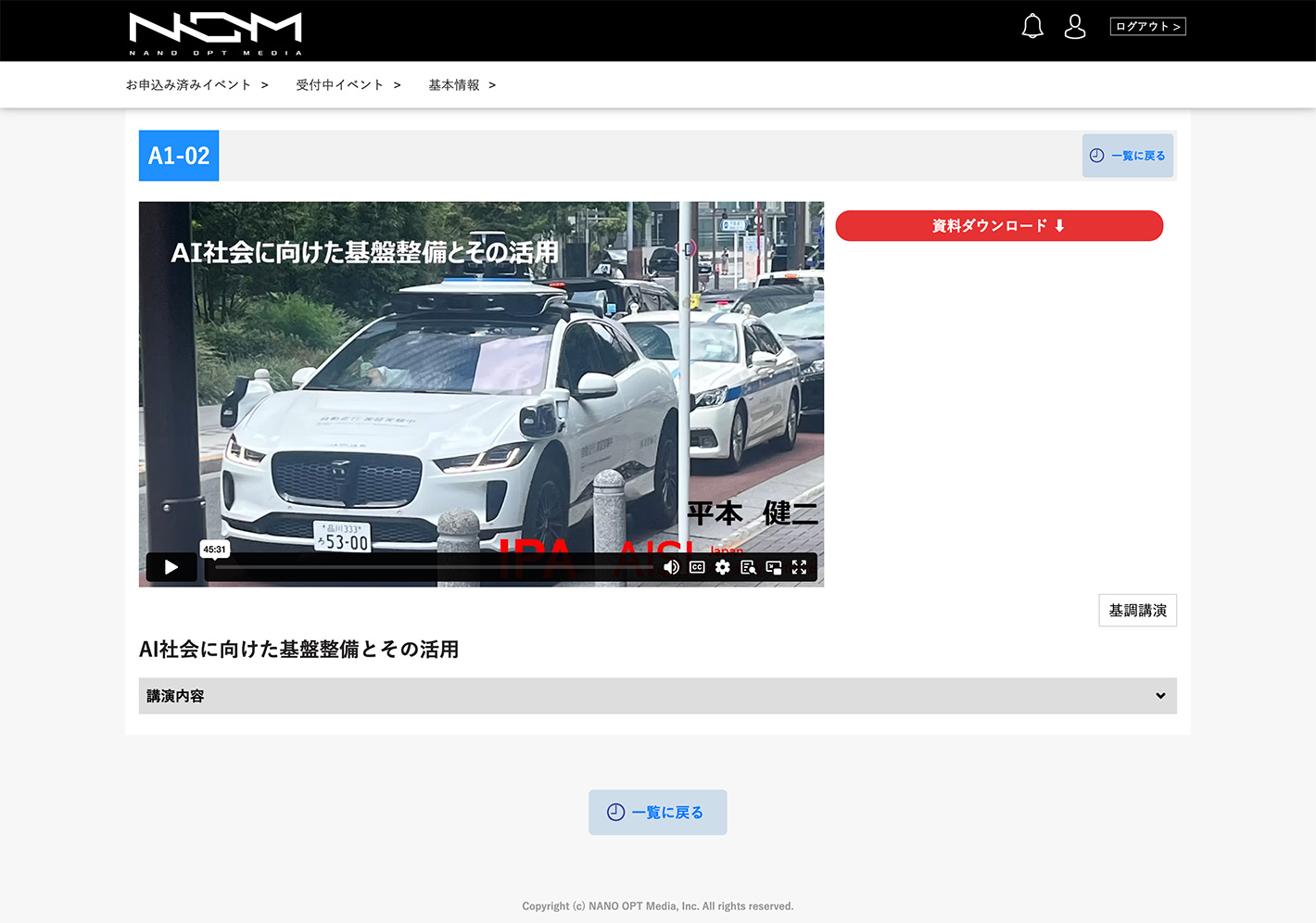 ログインすることにより、セッション動画の視聴と講演資料のダウンロードが可能になります