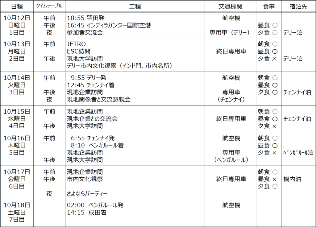 - 実施日程:2025年 10月12日(日)~18日(土)5泊7日(機中泊1泊)