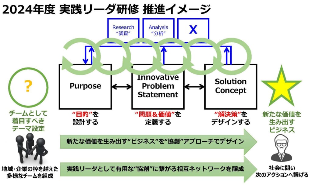 - 地域・企業・職位・立場を超越した、実践リーダとして有用となる、“協創”に繋がる相互ネットワークを醸成させる
